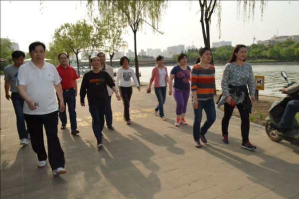 4月28日下午4:00,斜陽(yáng)濃濃,微風(fēng)徐徐,在集團公司領(lǐng)導秦廣遠、付立文等同志的帶領(lǐng)下,近40名員工在樓下準時(shí)集合,排成整齊的健步走隊伍,揮舞著(zhù)“鄭州市建設投資集團”的旗幟,精神抖擻地沿著(zhù)如意湖畔闊步前行,在運動(dòng)中體驗健康和快樂(lè )。