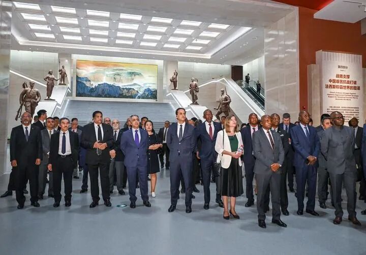 駐華外交官來(lái)到中國人民抗日戰爭紀念館,參觀(guān)紀念中國人民抗日戰爭暨世界反法西斯戰爭勝利80周年主題展覽《為了民族解放與世界和平》(2025年7月17日攝)。新華社記者 陳曄華 攝