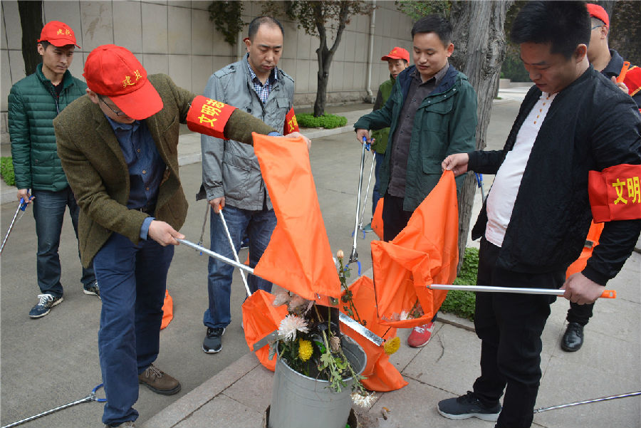 三、開(kāi)展“倡議文明緬懷,減少廢棄污染”拾撿垃圾志愿服務(wù)活動(dòng)。緬懷先烈活動(dòng)結束后,市建投公司志愿者們在烈士陵園內開(kāi)展“倡議文明緬懷,減少廢棄污染”拾撿垃圾志愿服務(wù)活動(dòng)。每位志愿者都手持垃圾鉗,認真將散落在紀念碑前以及隱藏在雜草中的廢棄鮮花、飲料瓶、紙張等垃圾拾撿起來(lái)放入提前準備好的垃圾袋中?;顒?dòng)持續一個(gè)小時(shí),志愿者們在祭奠先烈的同時(shí)以自己的實(shí)際行動(dòng)表達崇敬之情,并倡導以獻一束花、敬一杯酒、植一棵樹(shù)、清掃墓碑等方式寄托哀思,將祭拜逝者的傳統習俗以更加環(huán)保、健康、安全、文明的方式表達,營(yíng)造文明祭祀的良好氛圍。