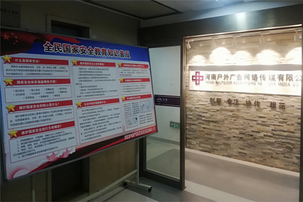 三、豐富活動(dòng)形式,營(yíng)造濃厚氛圍。集團公司有效運用集團公司官方網(wǎng)站、微博、微信、展板等集中宣傳國家安全教育活動(dòng)相關(guān)內容,在辦公場(chǎng)所明顯位置設立宣傳展板三塊,廣泛宣傳國家安全相關(guān)法律法規和維護國家安全的基本知識,營(yíng)造了良好的活動(dòng)氛圍,不斷提高活動(dòng)的影響力;各項目部、各控股公司分別結合實(shí)際,通過(guò)宣傳展板、宣傳條幅、電子海報,LED大屏循環(huán)、施工圍擋等多途徑宣傳國家安全教育活動(dòng),全面覆蓋集團全體職工、承建項目全體參建人員。本次宣傳有效覆蓋人數達到2000余人。